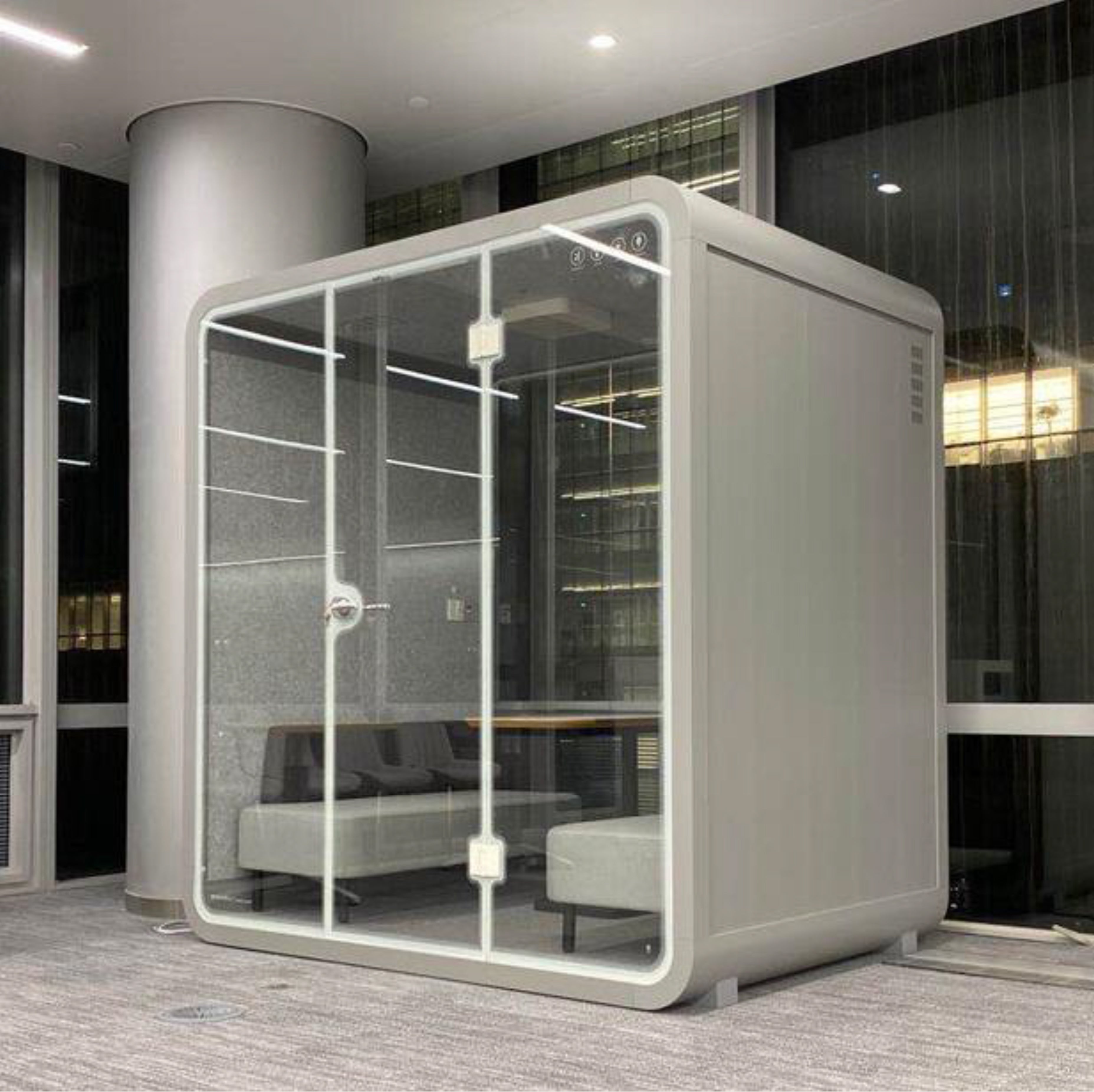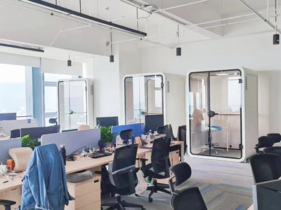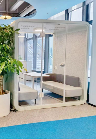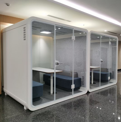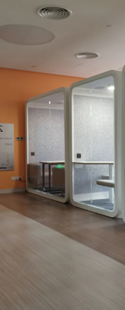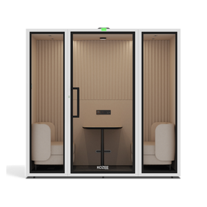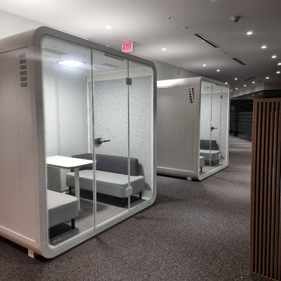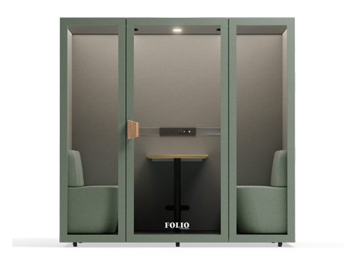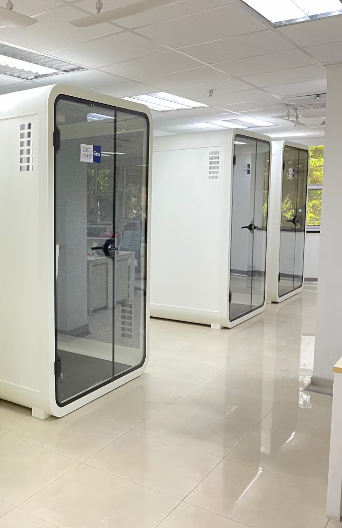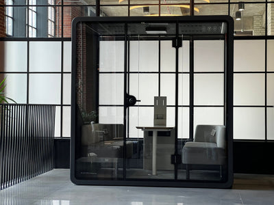 An eco-friendly acoustic workspace offering seclusion, comfort, and an environment that sparks innovation. Multiple configurations available for diverse settings including corporate offices, hotels, healthcare facilities, and creative studios.