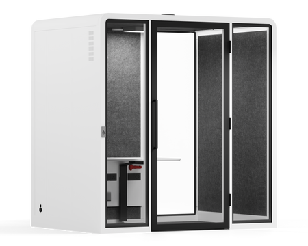 Our agile acoustic DDA booths are floor level entry, allowing easy access for wheel chairs. Additionally the touch less entry button automatically opens the door for users.